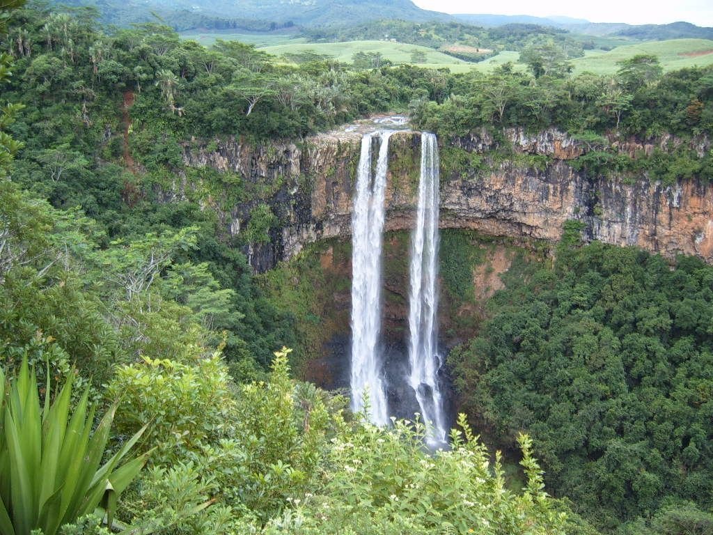 Chamarel-Wasserfall auf Mauritius: Ein Naturspektakel ohnegleichen: Die Zwillingswasserfälle auf der paradiesischen Insel Mauritius strömen über 90 Meter in die Tiefe. Wer ganz nah ran möchte, kann über einen kleinen Weg den Fuß des Wasserfalls erreichen. Tipp: In der Nähe befindet sich das Naturphänomen "Siebenfarbige Erde", eine bunt-schimmernde Hügellandschaft aus Lavagestein.
