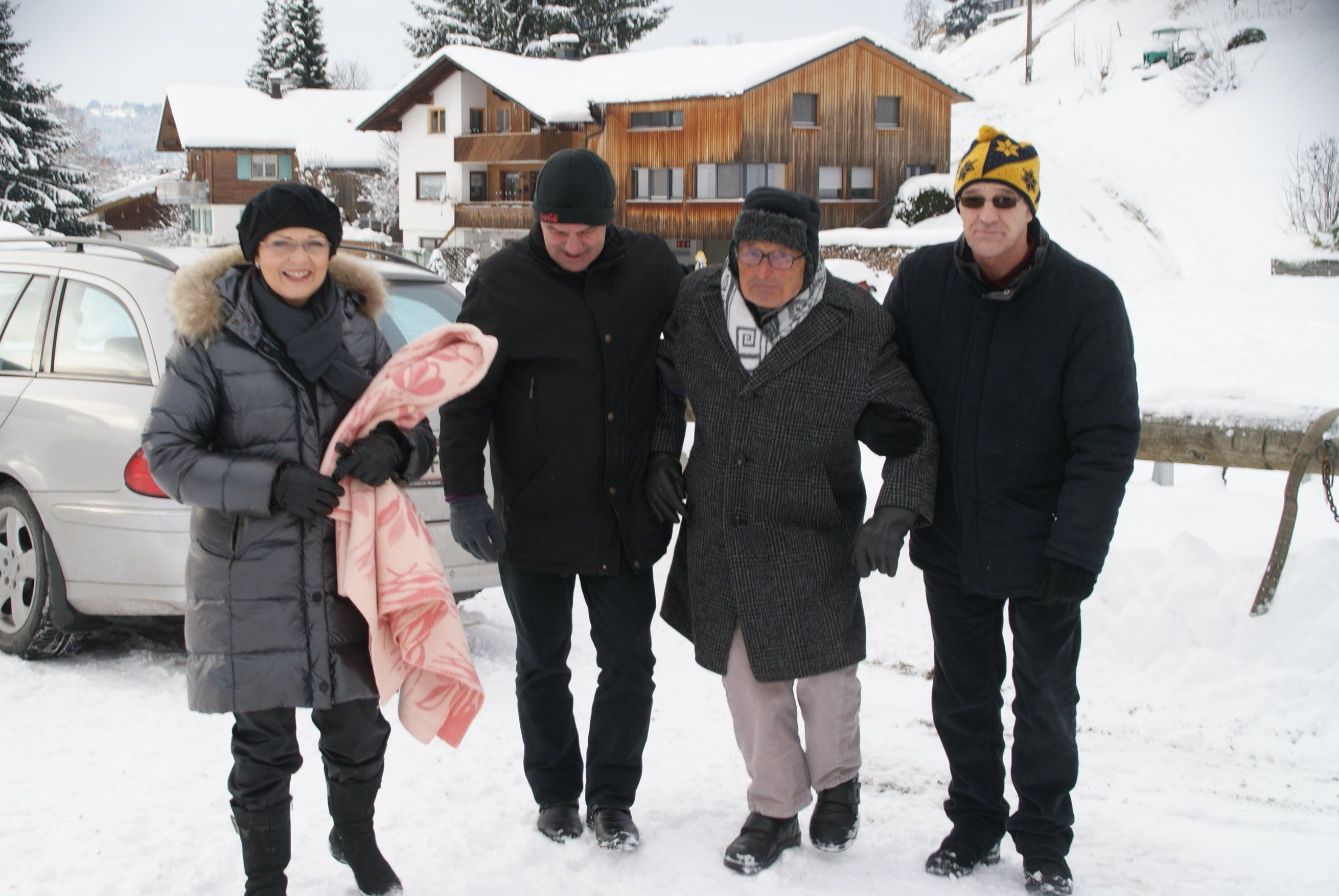 Tone Steiner, 2. von rechts, wird zur Kutsche geleitet