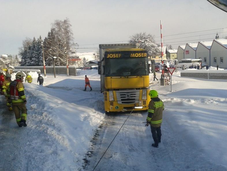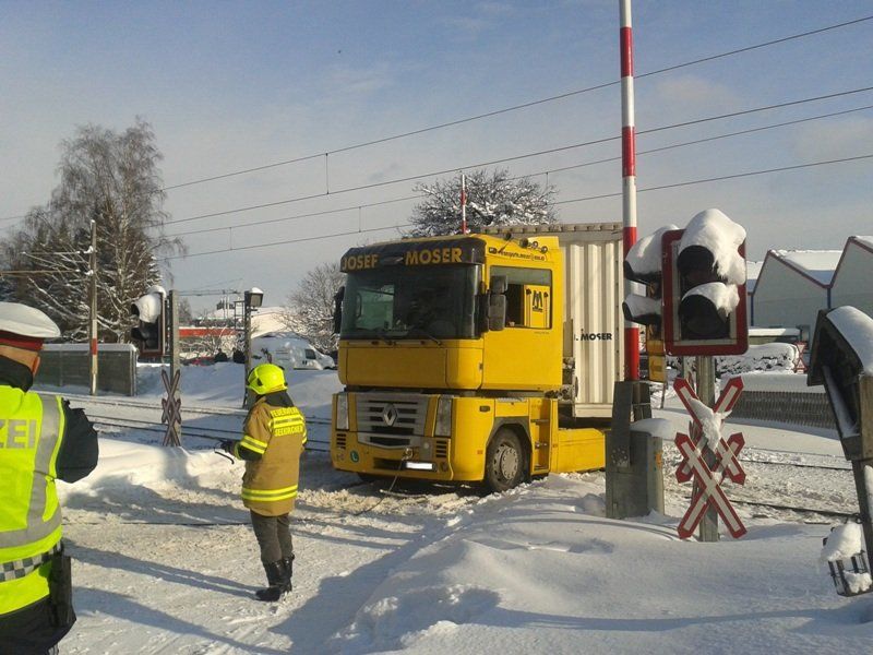 Lkw auf Bahngleisen