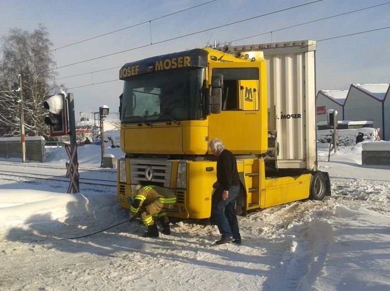 Lkw bleibt auf Gleisen hängen