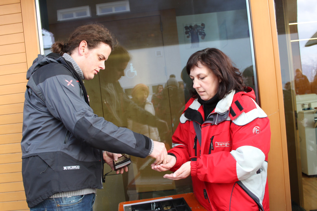 Sabine an der FC-Kassa
