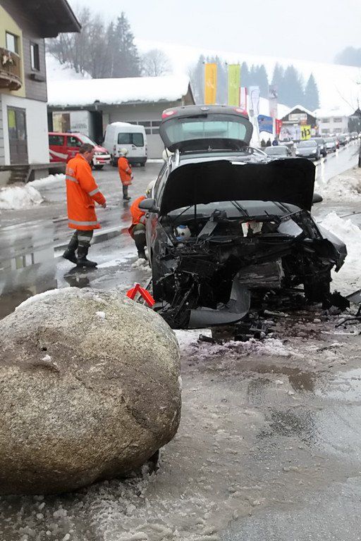 Pkw prallt in Felsen