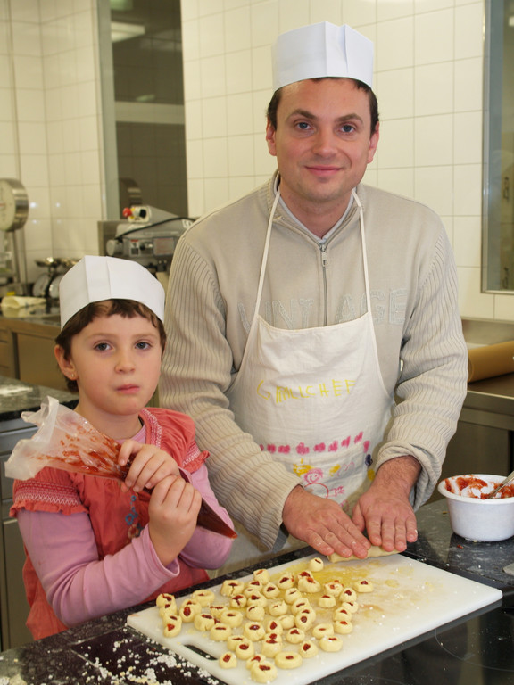 Väter und Kinder backen Kekse