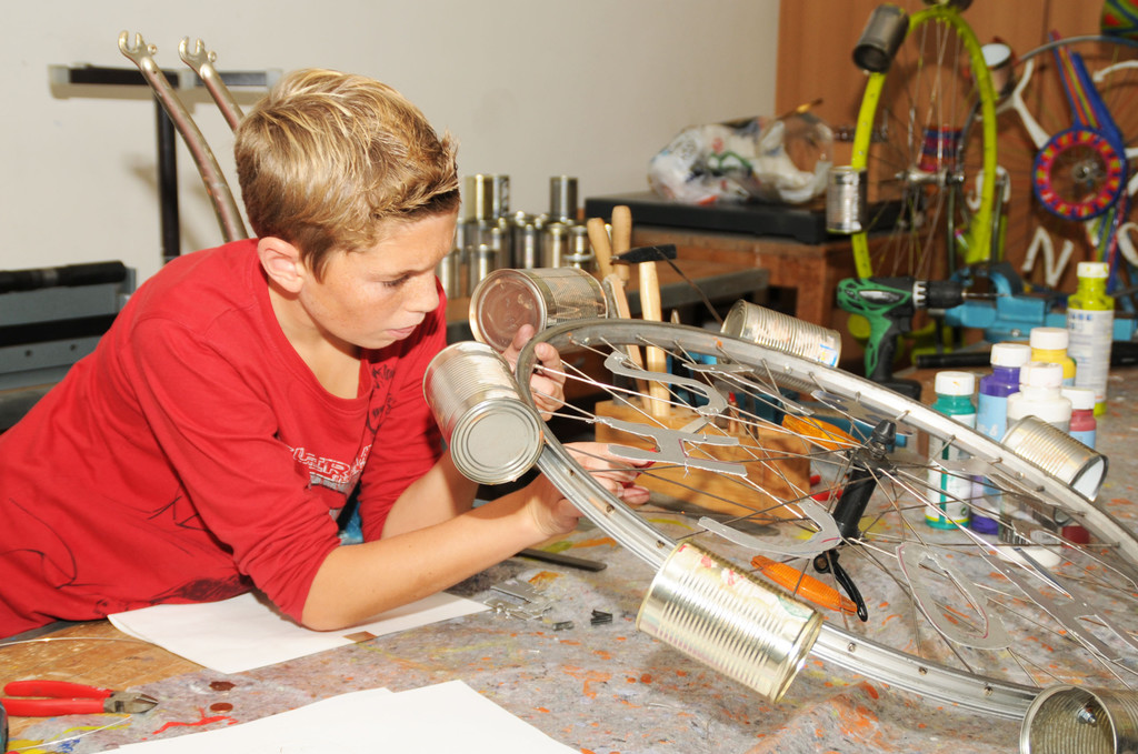 Bewegtes Kunstwerk aus ausgedienten Rädern