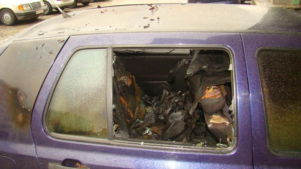 Fahrzeugbrand am Sechshauser Gürtel: Der ausgebrannte Pkw