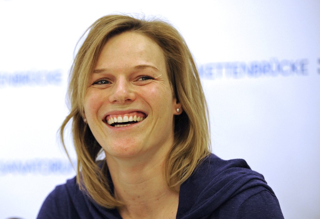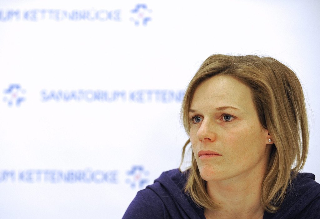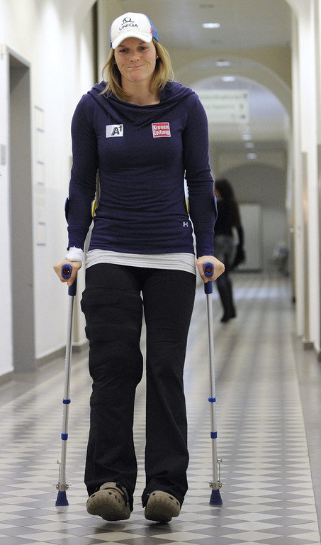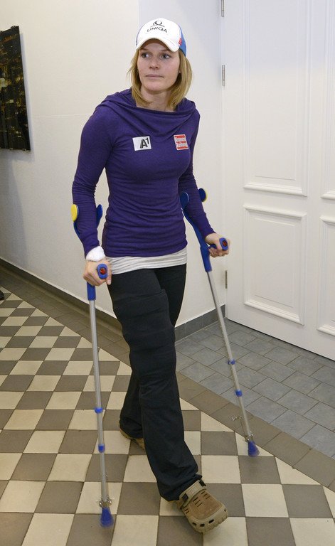 Marlies Schild auf der ÖSV-Pressekonferenz nach ihrer Verletzung und Operation