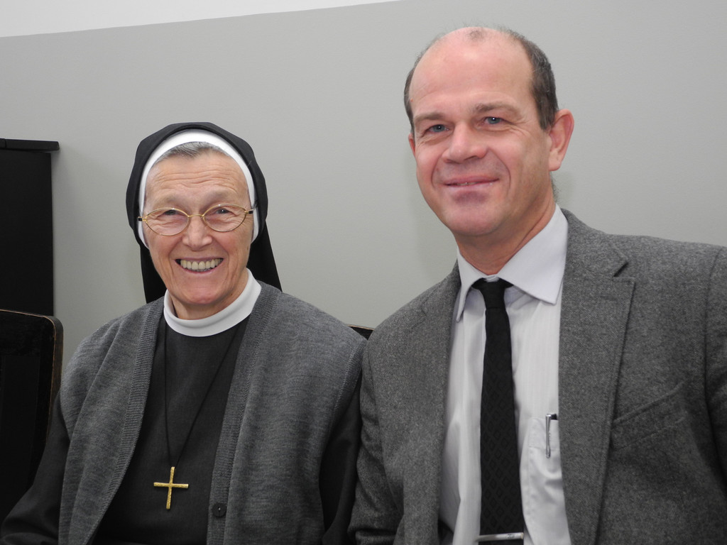 Schwester Eugenia Maria mit Manfred Trefalt, dem Präsidenten des Kaiwanis-Club Feldkirch-Montfort.