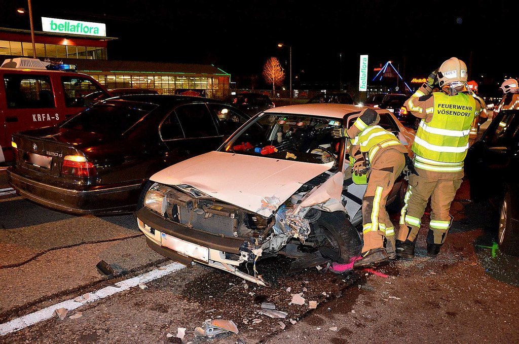 Bus zur SCS in Unfall verwickelt: Feuerwehr musste Lenker aus Pkw befreien
