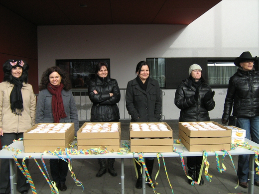Die Mütter vom Elternverein schenkten allen einen Faschingskrapfen