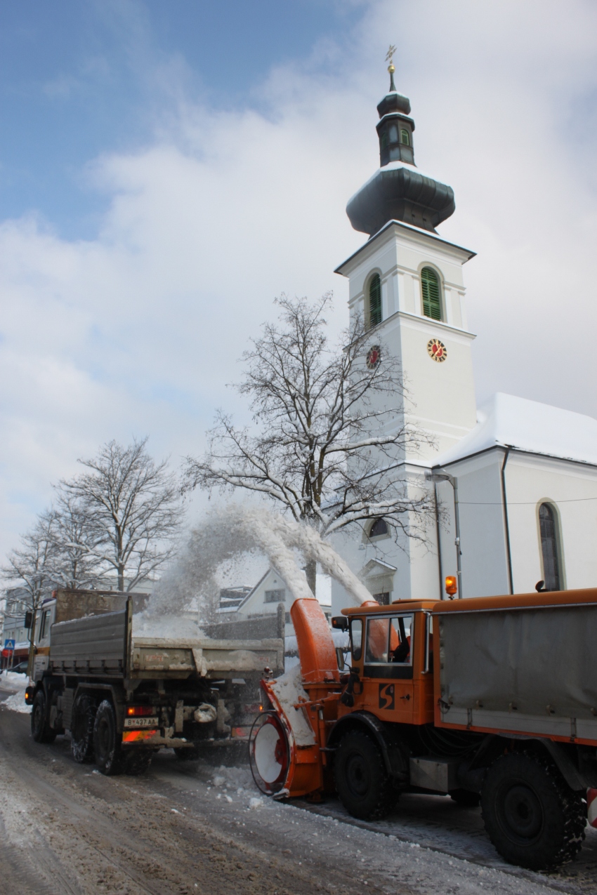 Schneeräumung im Lochauer Ortszentrum durch Land und Gemeinde
