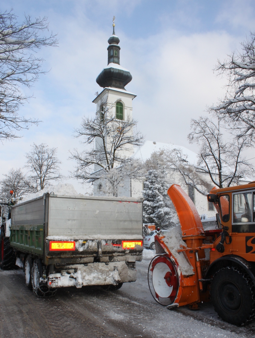 Schneeräumung im Lochauer Ortszentrum durch Land und Gemeinde