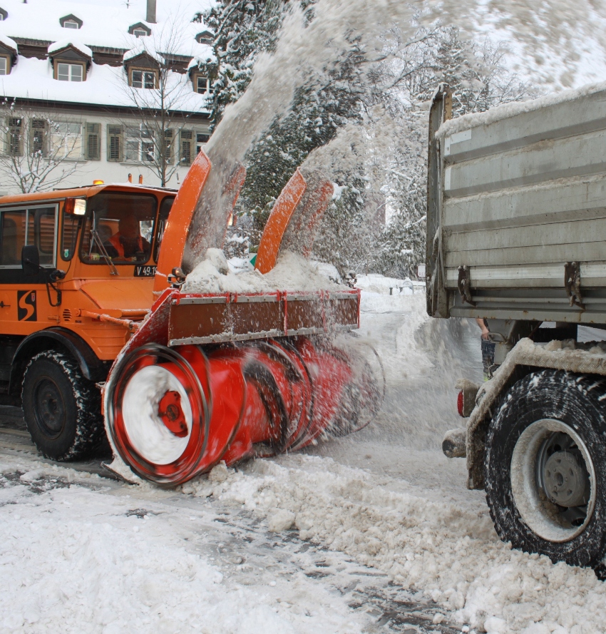 Schneeräumung im Lochauer Ortszentrum durch Land und Gemeinde