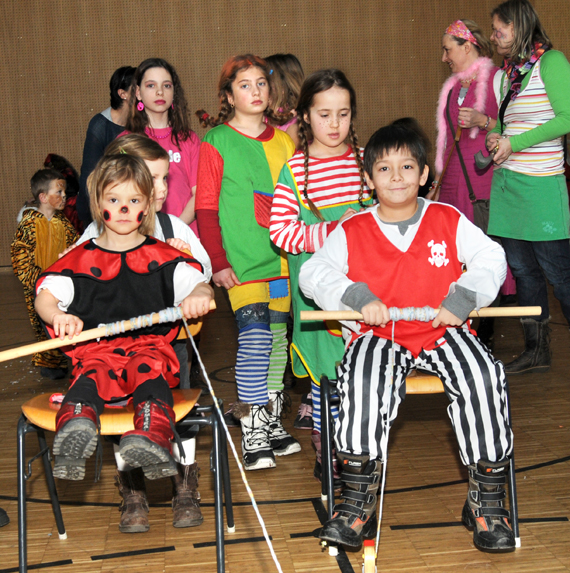 Buntes Treiben beim Kinderfasching in der Rheinauhalle Höchst