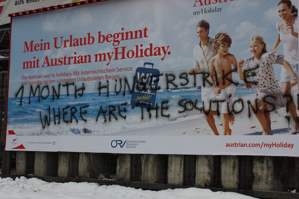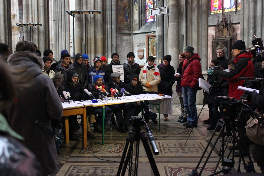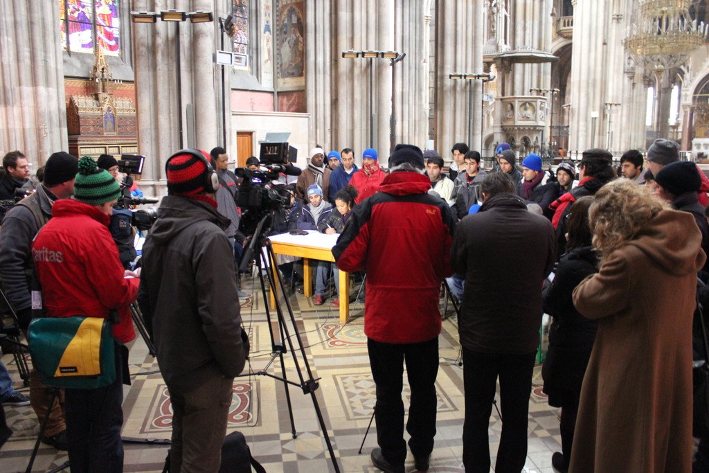 Hungerstreik unterbrochen: Bei der Pressekonferenz der Flüchtlinge in der Votivkirche