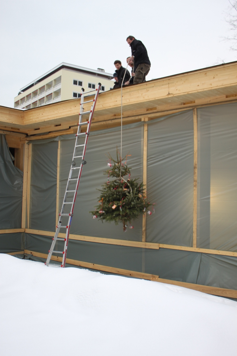 Aufzug und Setzung des Firstbäumchens.