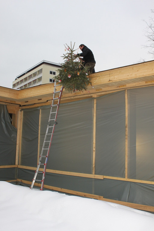Aufzug und Setzung des Firstbäumchens.