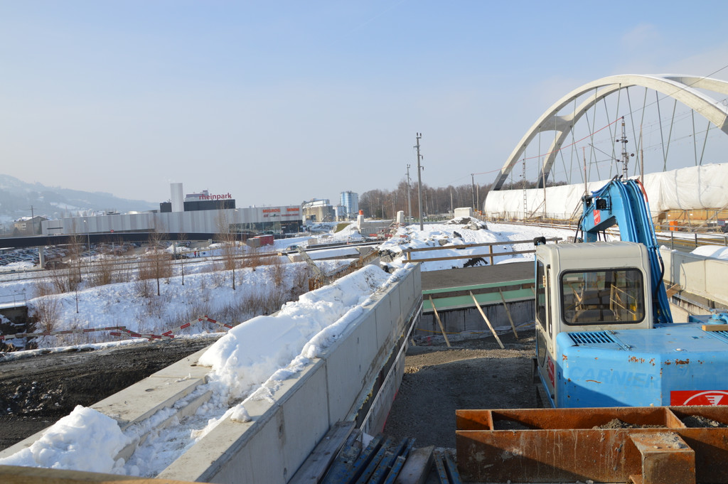 Die 82,5 Meter lange neue Eisenbahnbrücke, die über die A1 bei St. Margrethen führt, muss noch in ihre endgültige Lage gebracht werden
