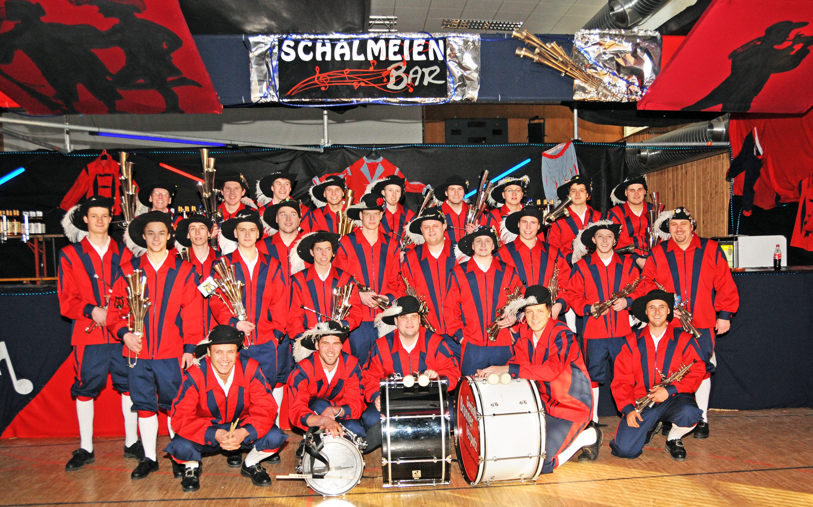 Der Schalmeienzug Höchst vor der Schalmeien-Bar