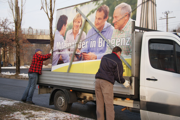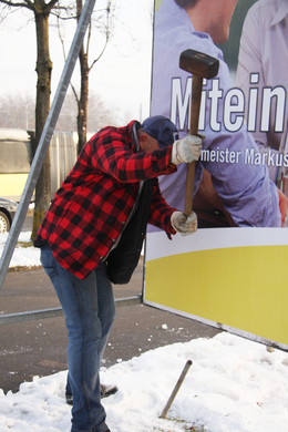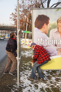 Aufbau der ersten Wahlplakate