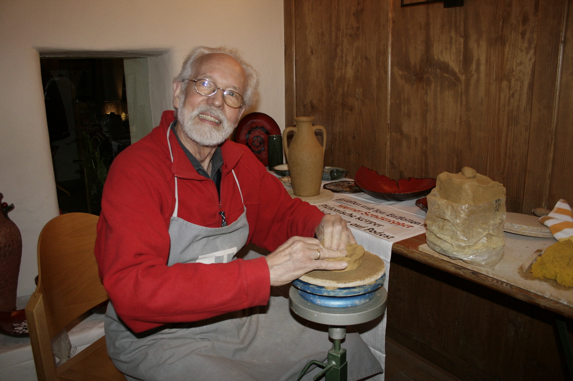 VHS-Obmann Werner Sonderegger zeigt die Aufbautechnik in der Keramik.