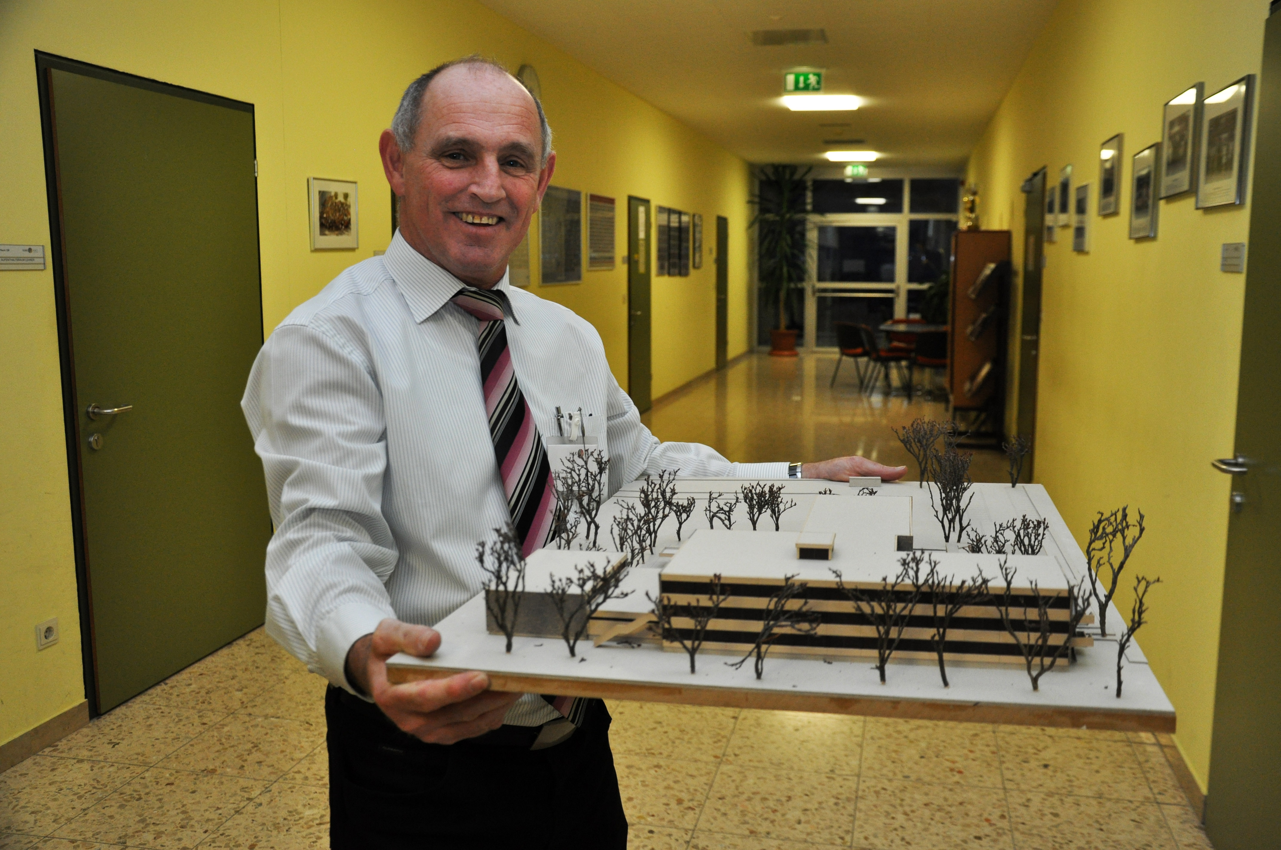 Der Direktor der HAK/HAS Lustenau Hermann Begle mit dem Modell des umgebauten Schulkomplexes.