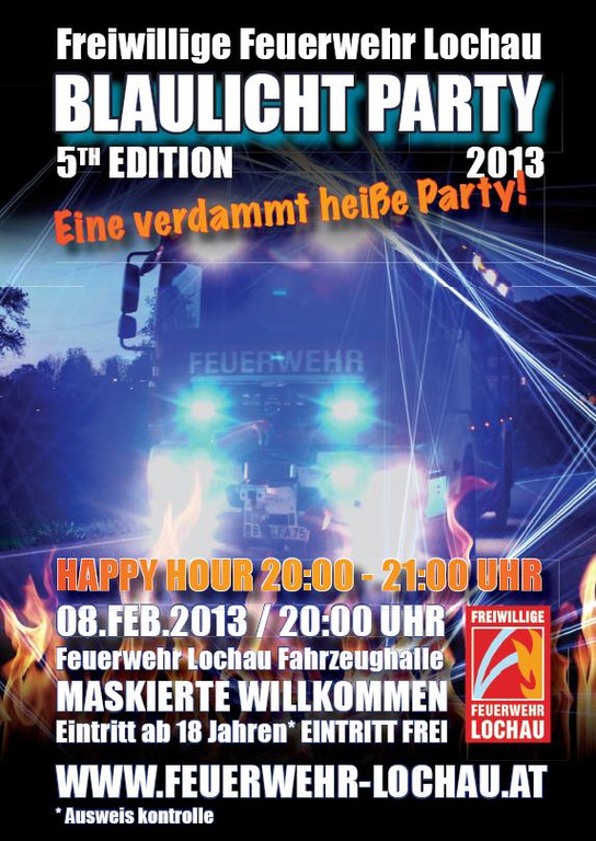 Einladung zur „Blaulicht Party – die Fünfte“ im Feuerwehrhaus