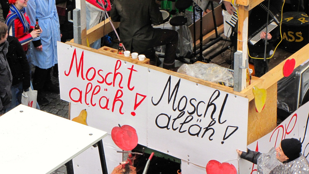 Die Alpenrepublik Gampelün mit ihrem Spruch "Moscht alläh"