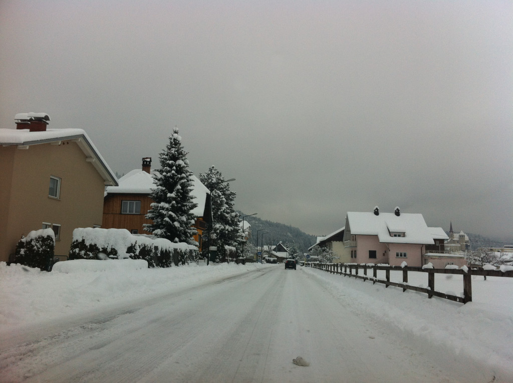 Schnee- und Straßenzustand Rankweil, Montag, 4. Februar 2013 – Mittagszeit