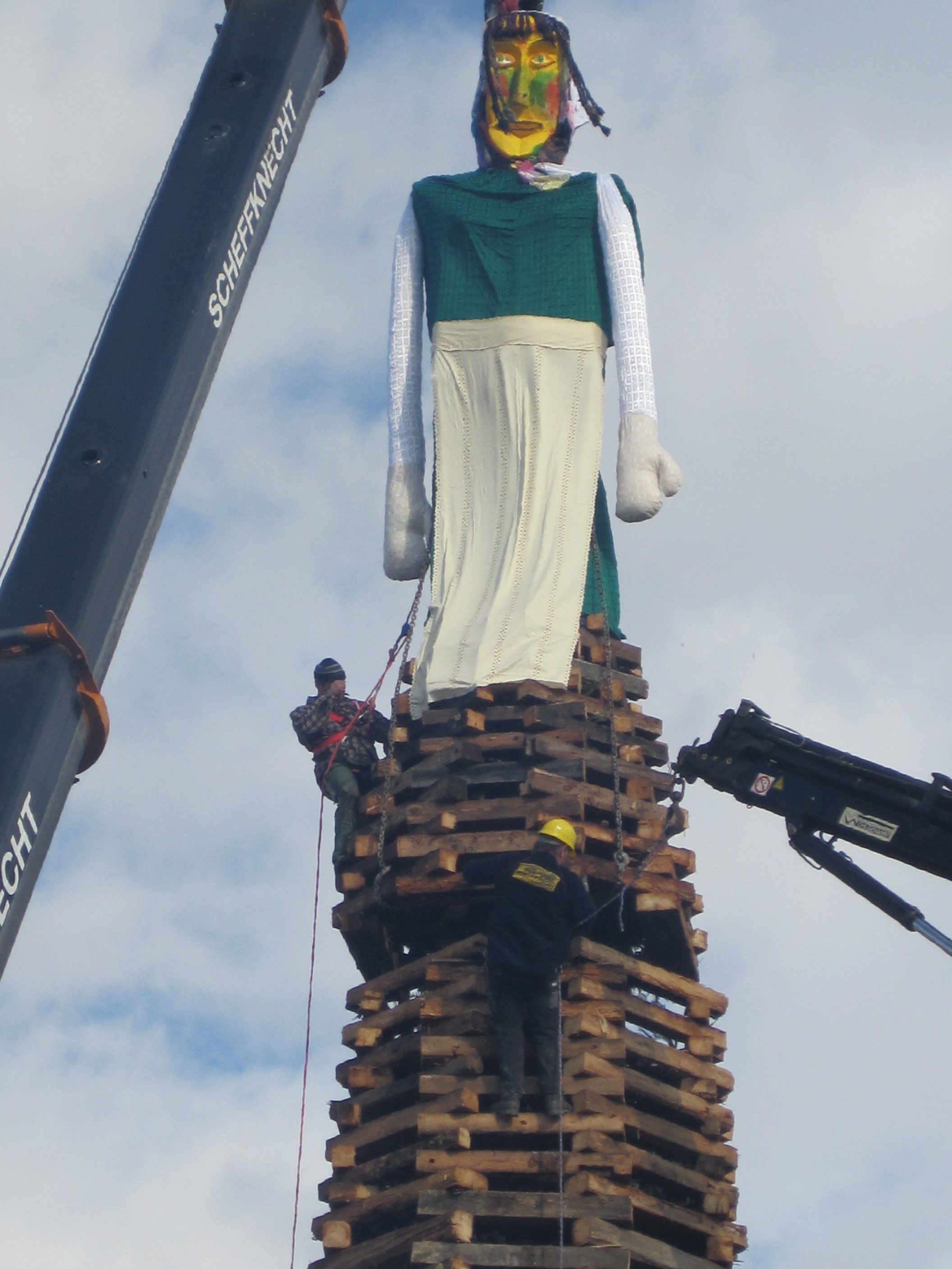 Befestigung der Funkenspitze samt Hexe in schwindelnder Höhe