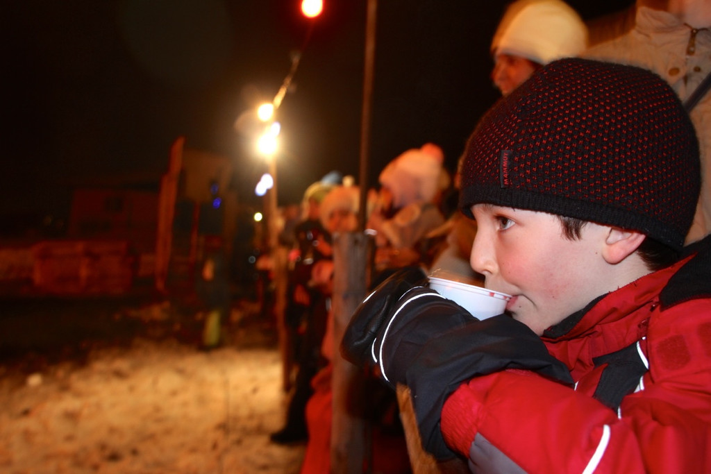 Das Feuer und heißer Tee wärmten