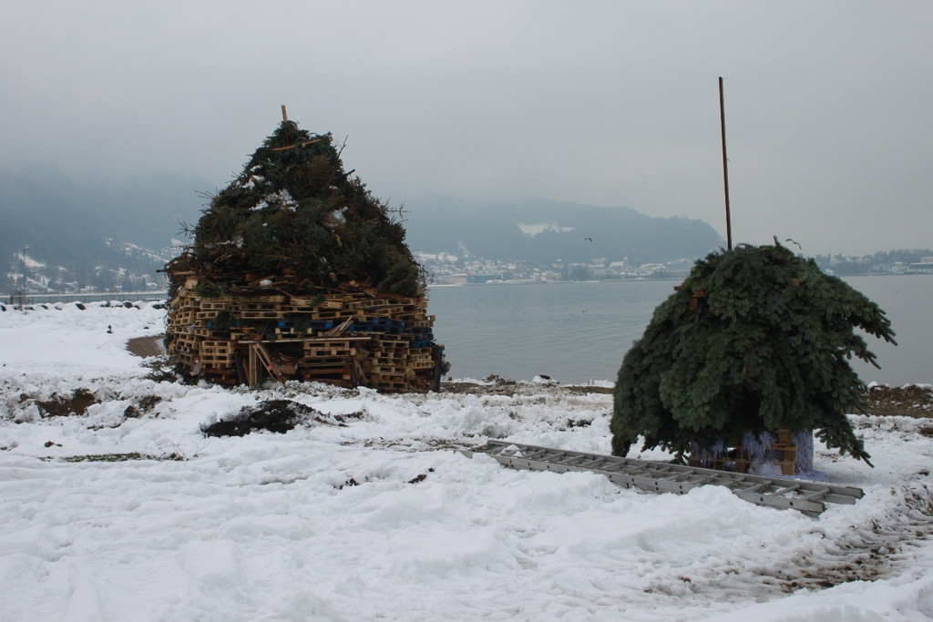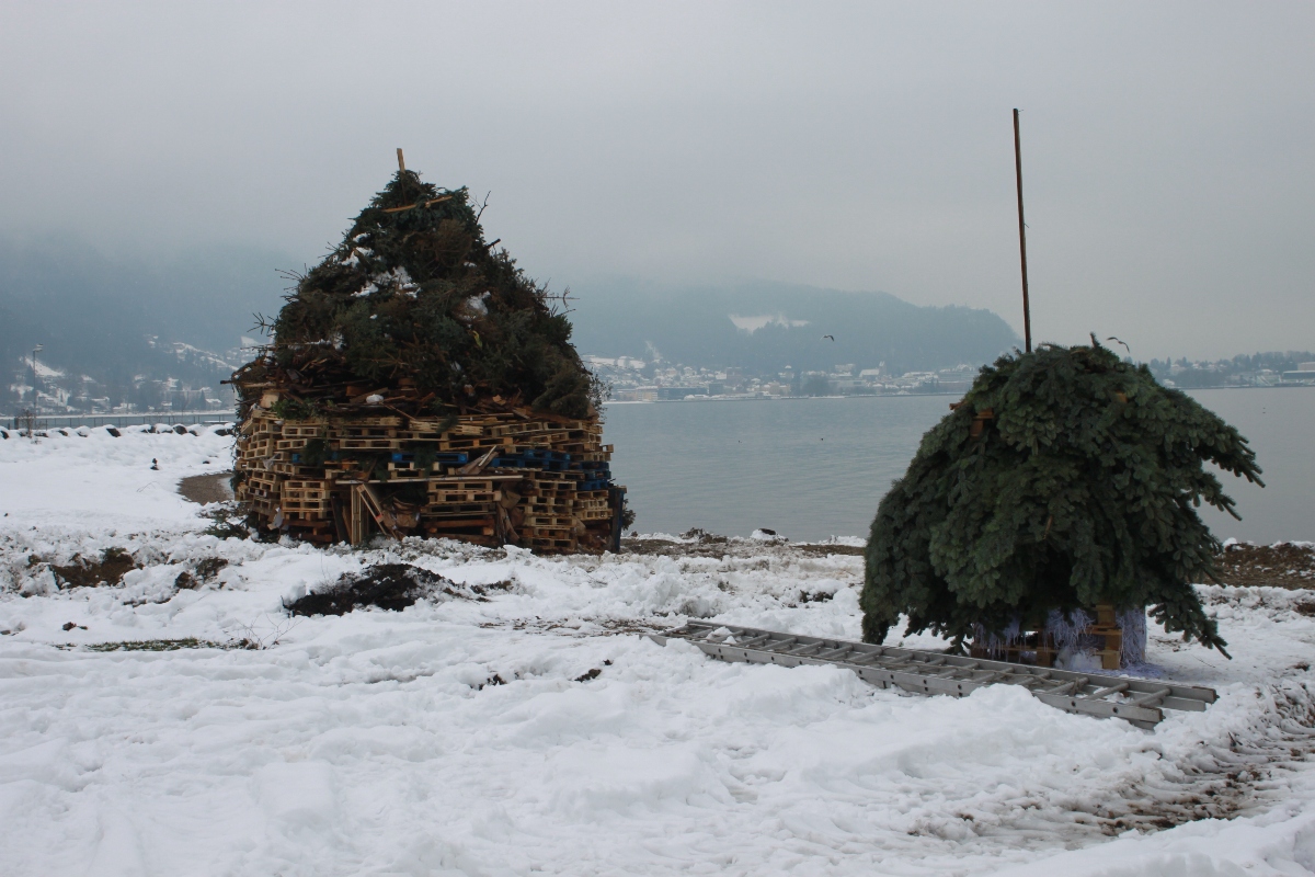 Aufbau und Abbrennen des „Bäumler-Funken“ am See
