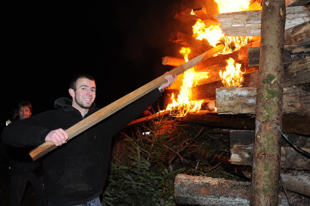Dem Gewinner der Funkenlotterie obliegt die Ehre, beim Entzünden mit Hand anzulegen.