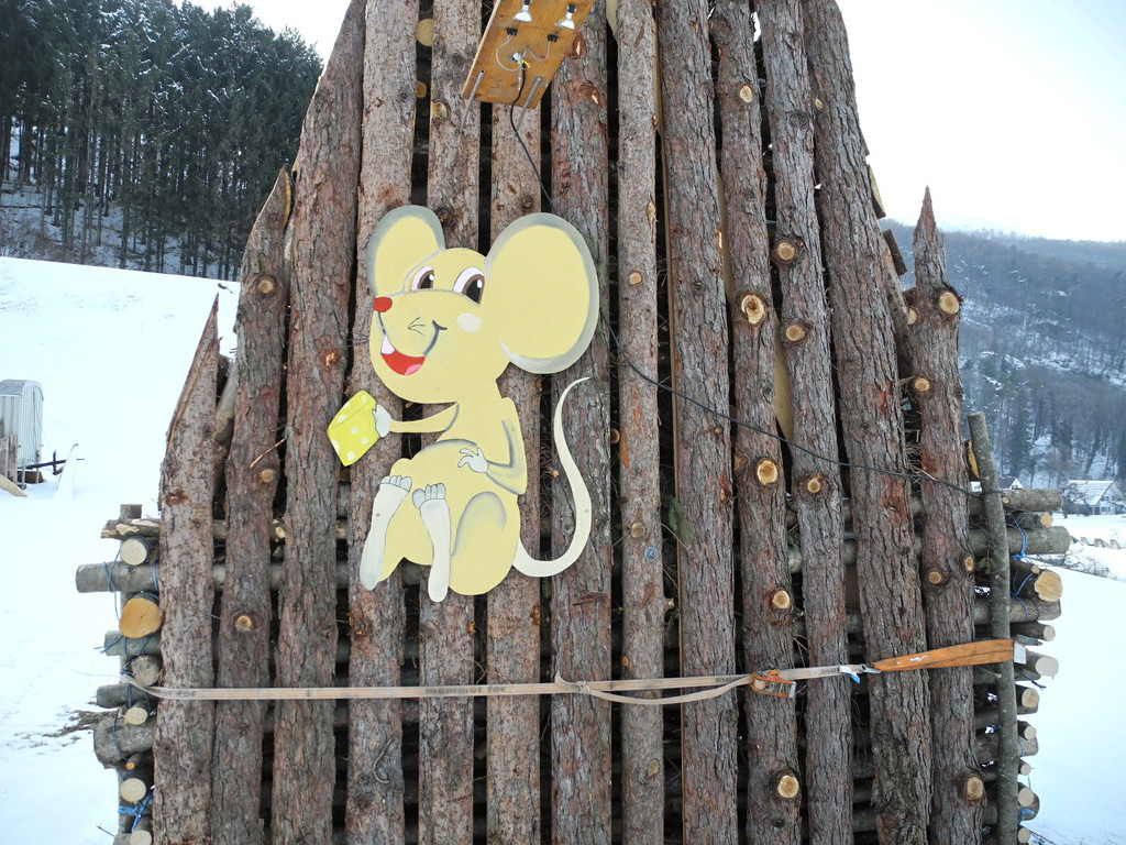 Die kleine freche Maus knabbert bereits am Käsefunken