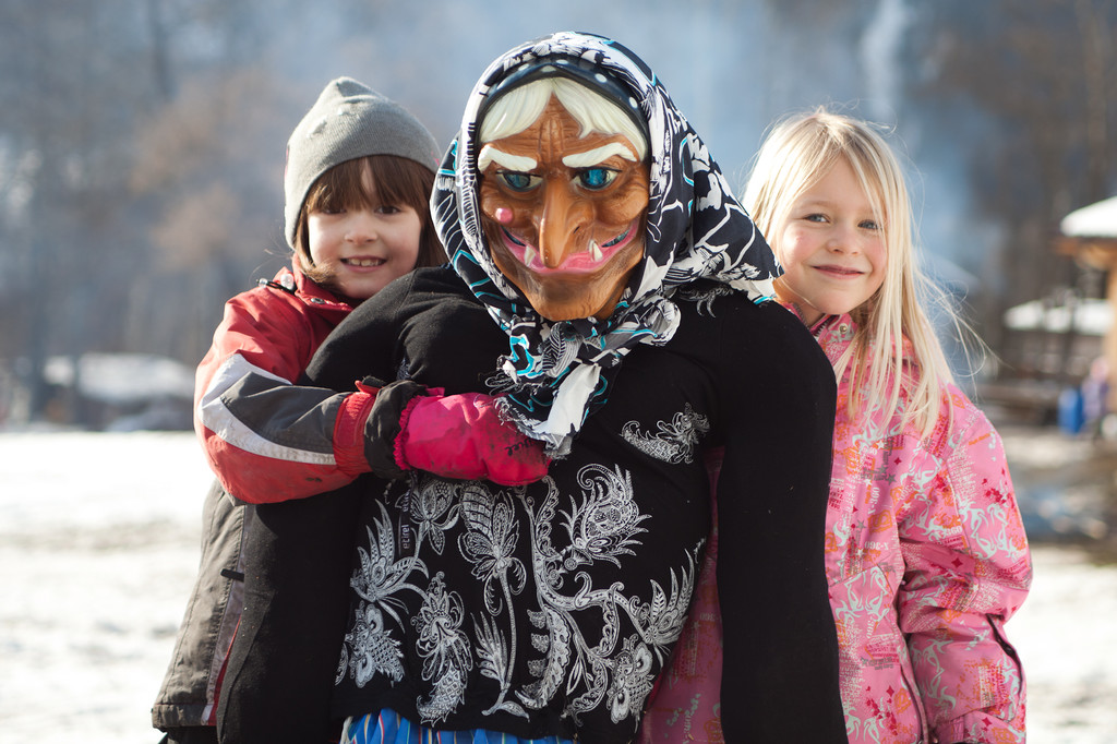 Funken St. Anton i. M. Delia und Leah mit der Funkenhexe Kinder