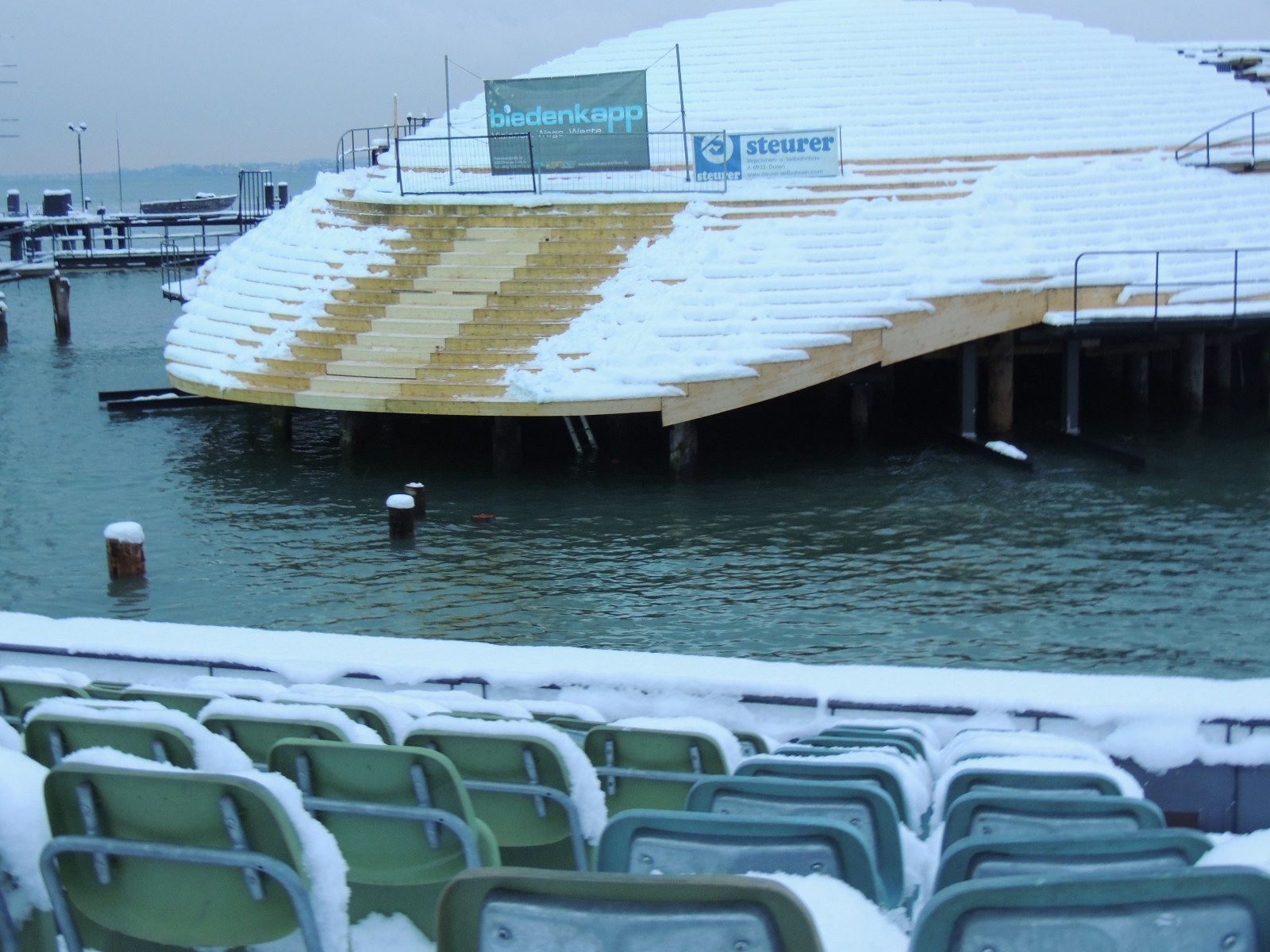 Seebühne vom Schnee befreit