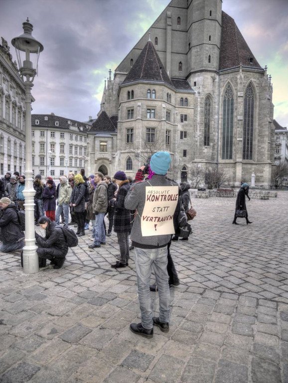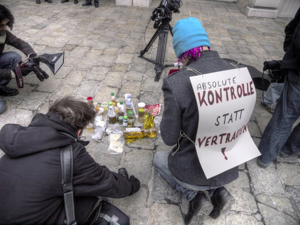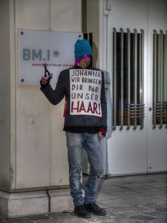 Flashmob vor Innenministerium mit Haar- und Urinproben: Gegen Mikl-Leitner-Beschluss