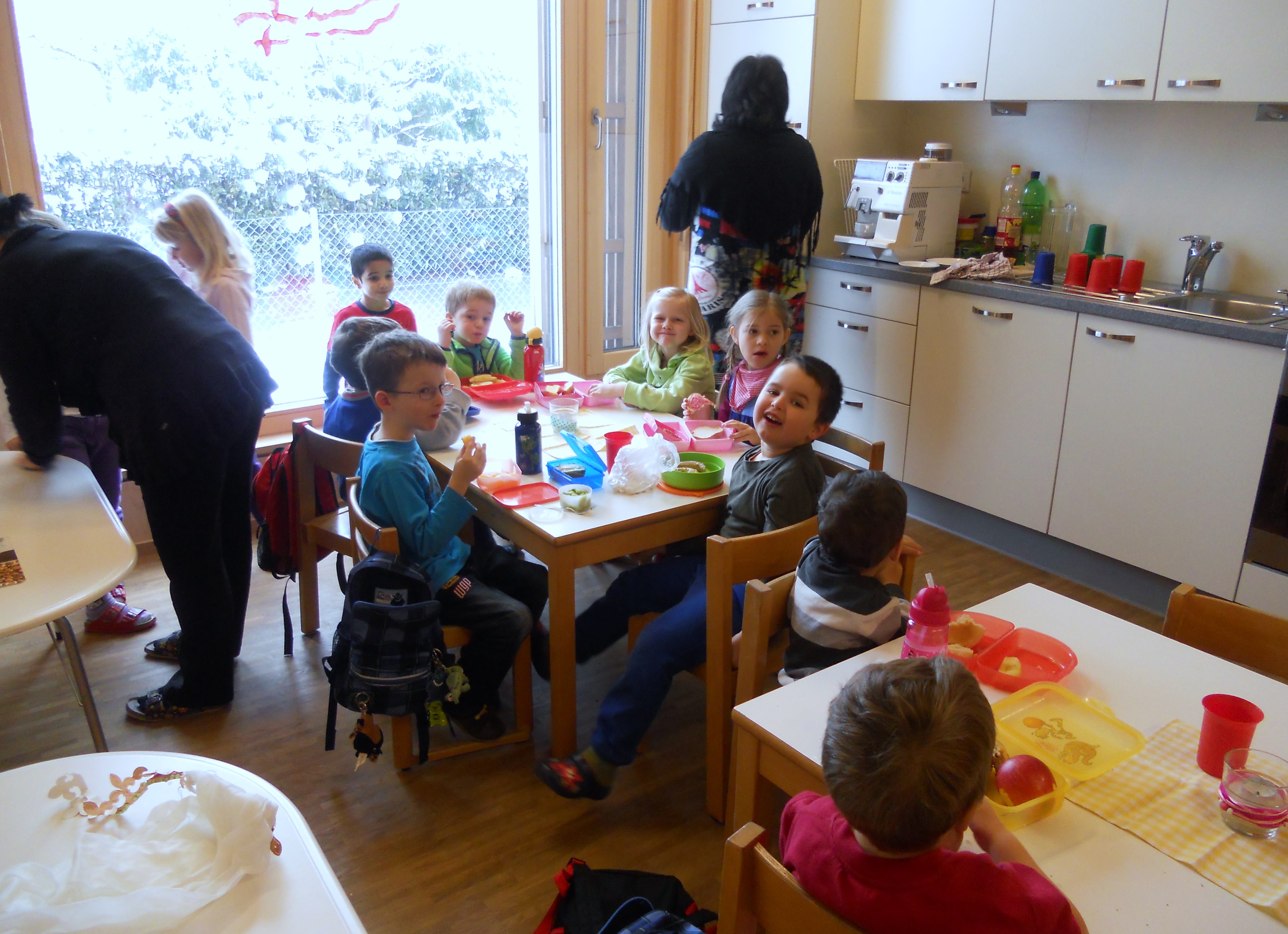 29 Kindergartenkinder bei der Jause.JPG