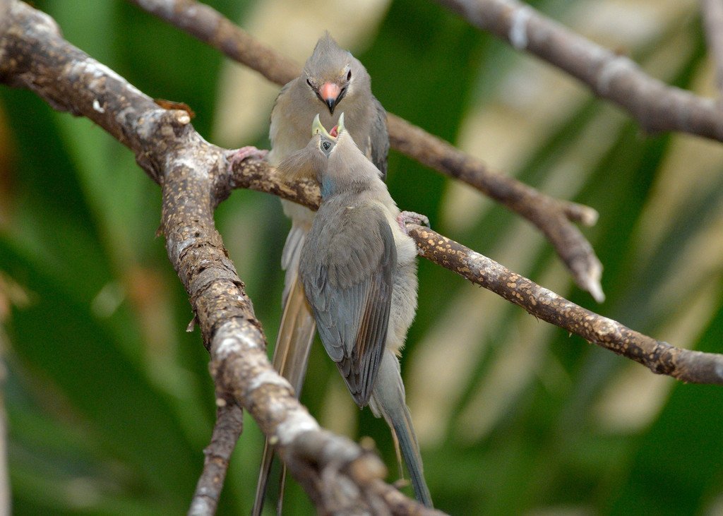 Blaunacken-Mausvogel-Nachwuchs im Tiergarten Schönbrunn