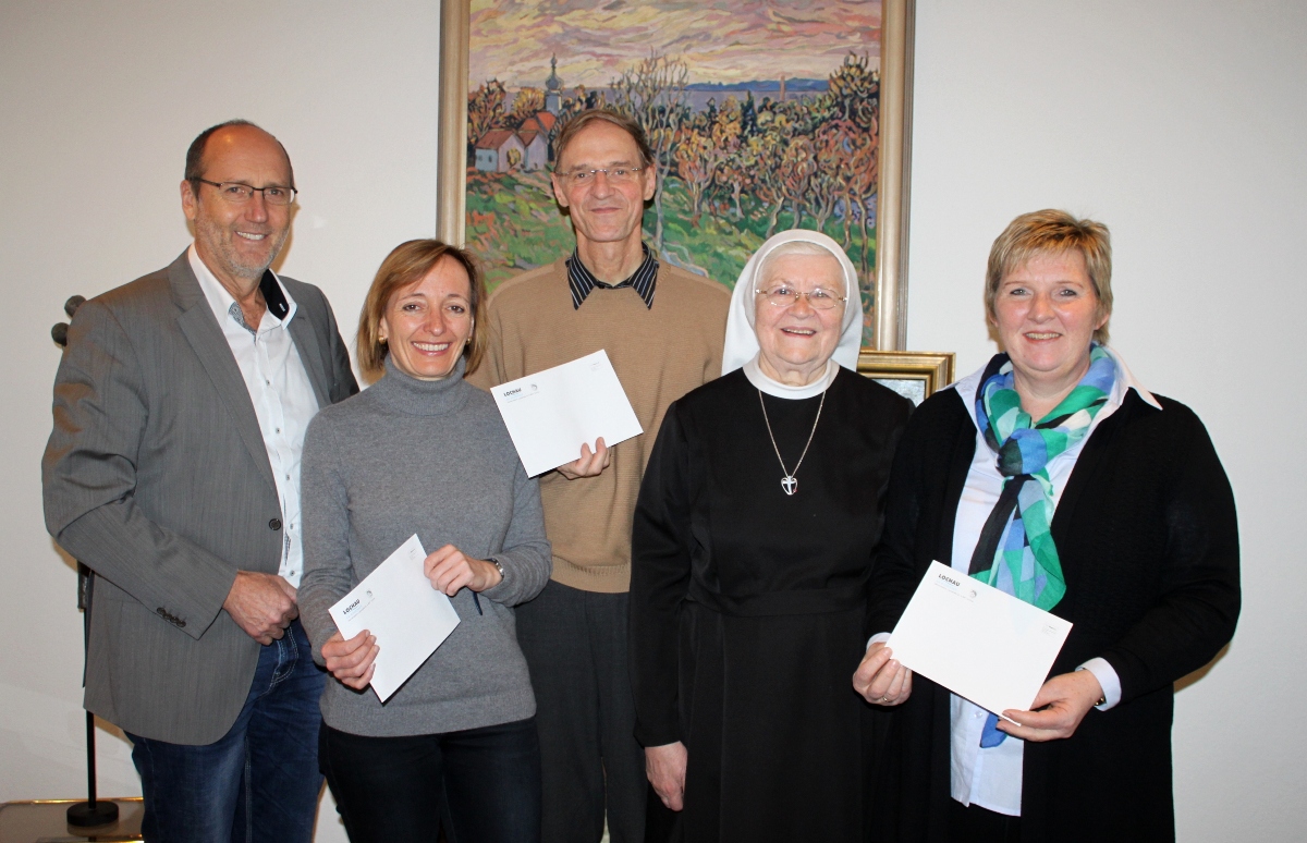 Bürgermeister Xaver Sinz, Sozialreferentin Andrea Kramer, Pfarrer Gerhard Mähr sowie Schwester Oberin Adela Giesinger und Heimleiterin Marion Bumberger.