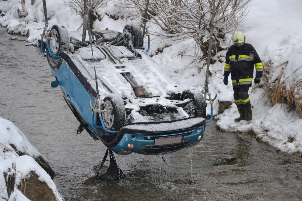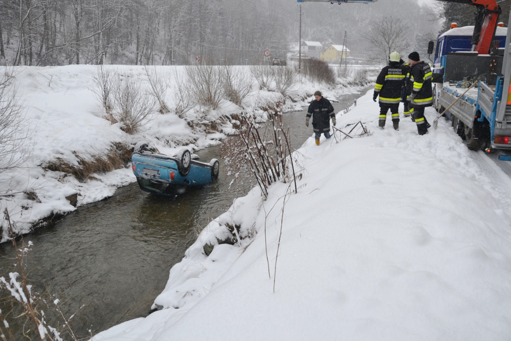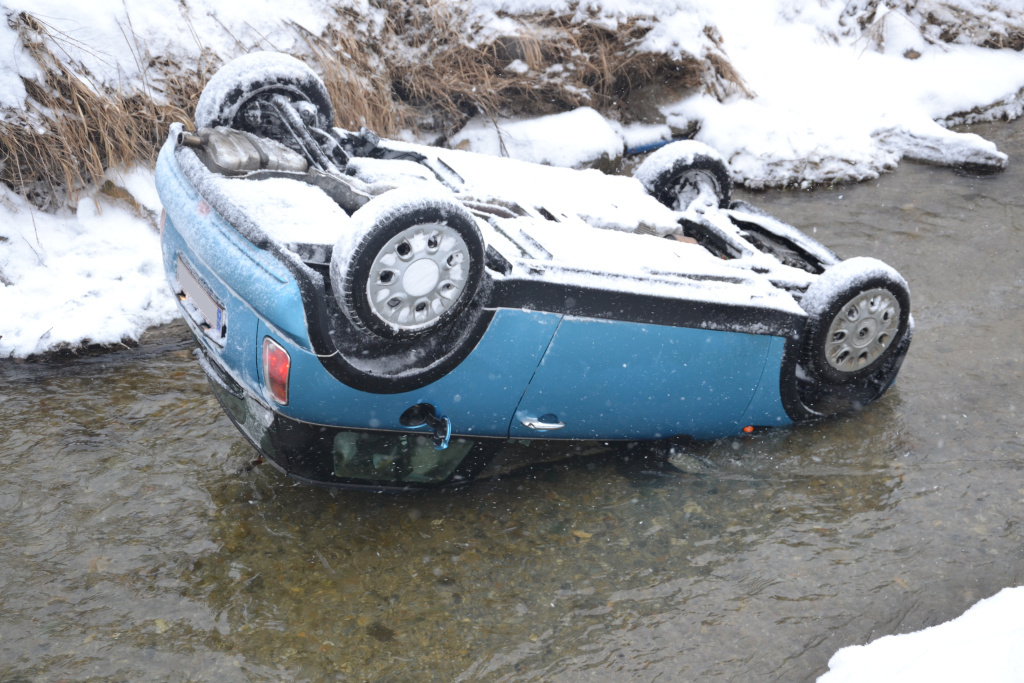 Pkw überschlägt sich auf der B55 in Bad Schönau in den Bach