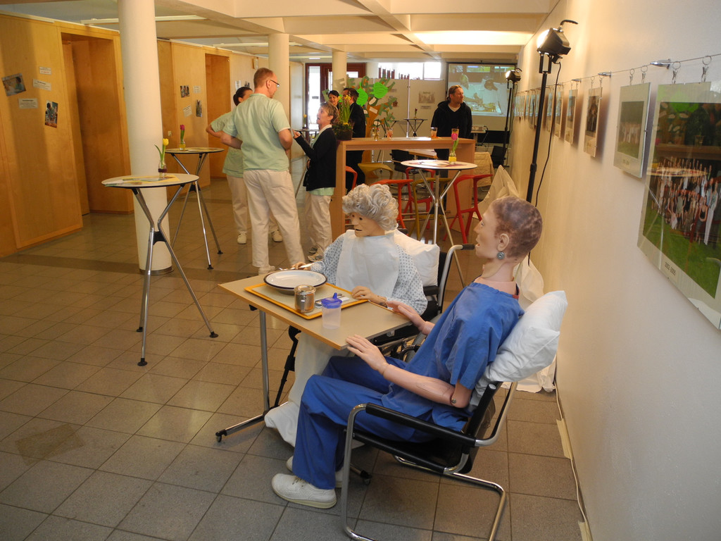 Das "ältere" Pärchen lud zu Infos zur Pflegehilfeausbildung ein