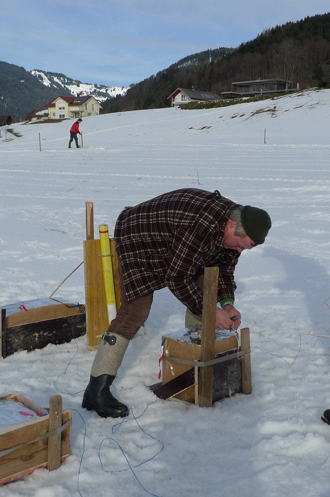 Das Feuerwerk wird verkabelt.
