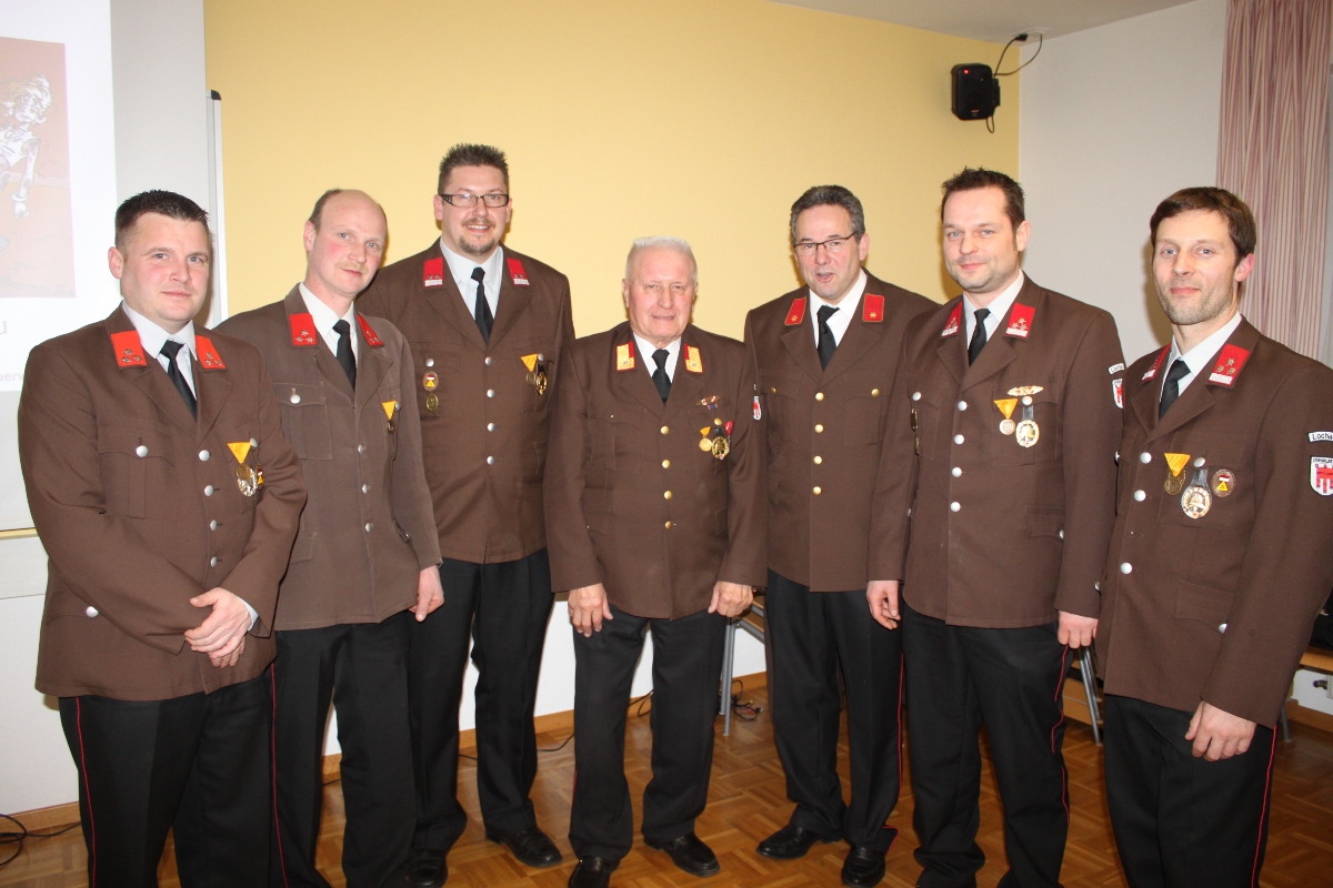 Vor 25 Jahren wurden die „Jubilare“ in der Jugendfeuerwehr von Xaver Boch und Dietmar Heiß (Bildmitte) ausgebildet.