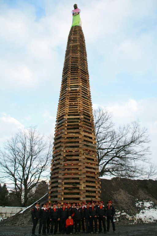 Die Hofstalder vor ihrem prächtigen Funken, der dem "Schiefen Turm von Pisa" keineswegs ähnelte