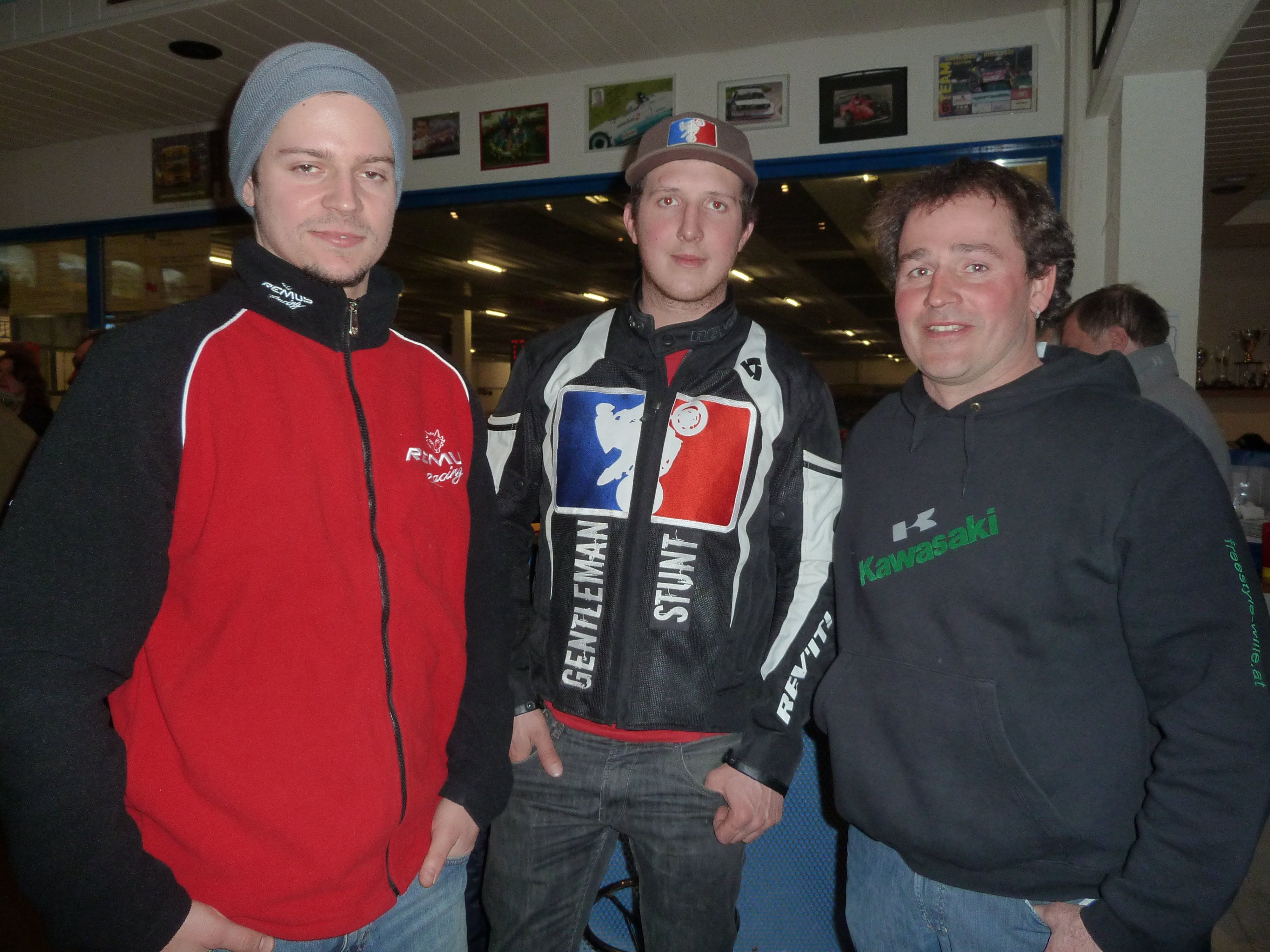Daniel Fellner und Daniel Sattler (beide Stuntfahrer aus Kärnten) mit Markus William (Stuntfahrer Bregenzerwald).