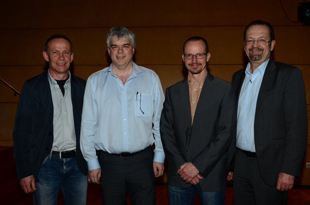 Vize-Bgm. Franz Kopf (Altach), Initiator GR Jürgen Koblinger, Verkehrsexperte Helmut Kröll und Bgm. Rainer Siegele (Mäder) (v.l.).
