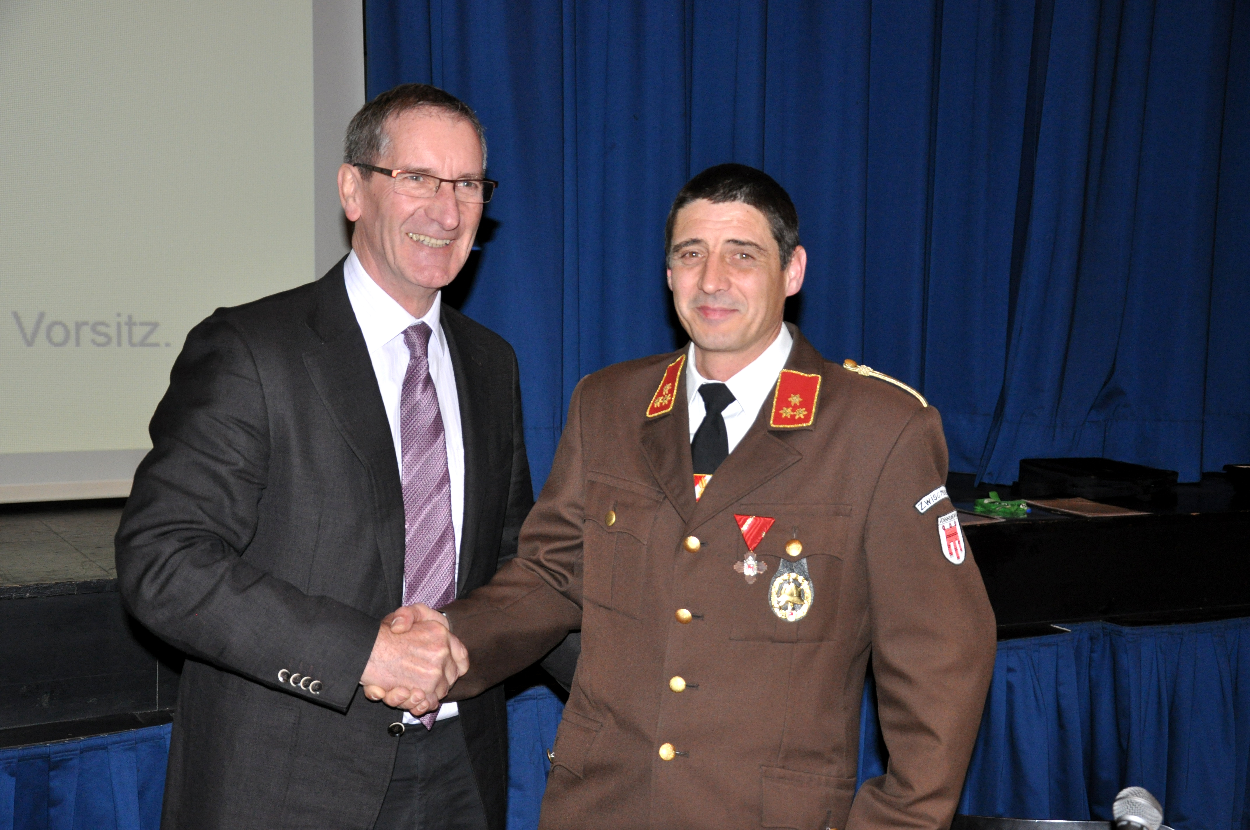 BGM Josef Mathis gratuliert Kommandant Stefan Schnetzer