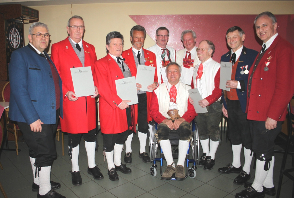 Dank und Anerkennung den Musikanten für 50 bzw. 60 Jahre aktive ehrenamtliche Tätigkeit in der Blasmusik, im Bild mit LO Wolfram Baldauf und BO Egon Nigsch.