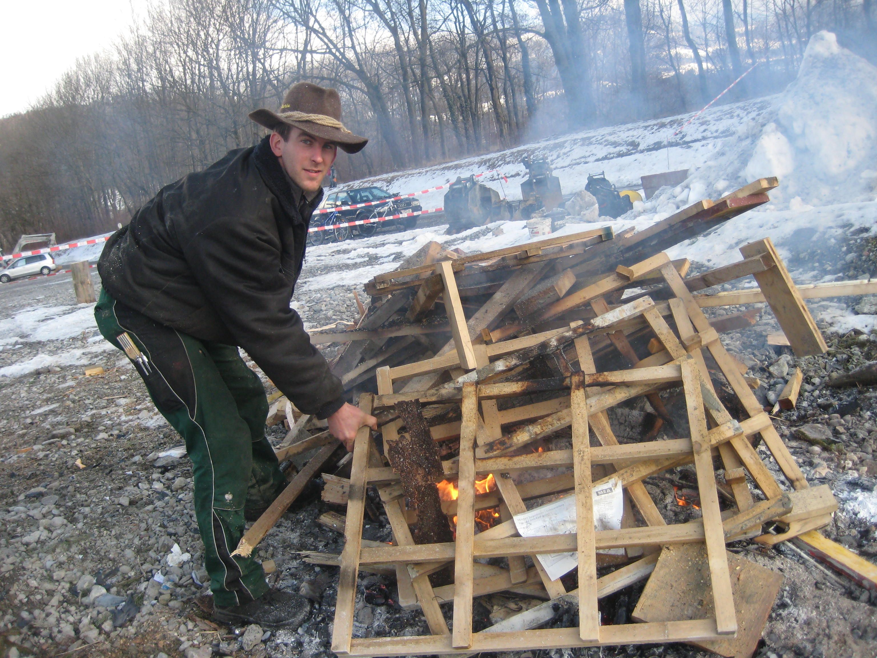 Marco beim Aufheizen des Lagerfeuers der Funkenwache.
