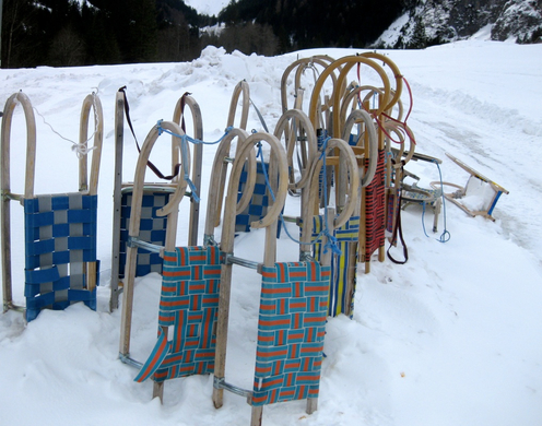 am Ortsende von Brand kann man dann die ausgeliehene Rodel am Wegrand einfach abstellen.